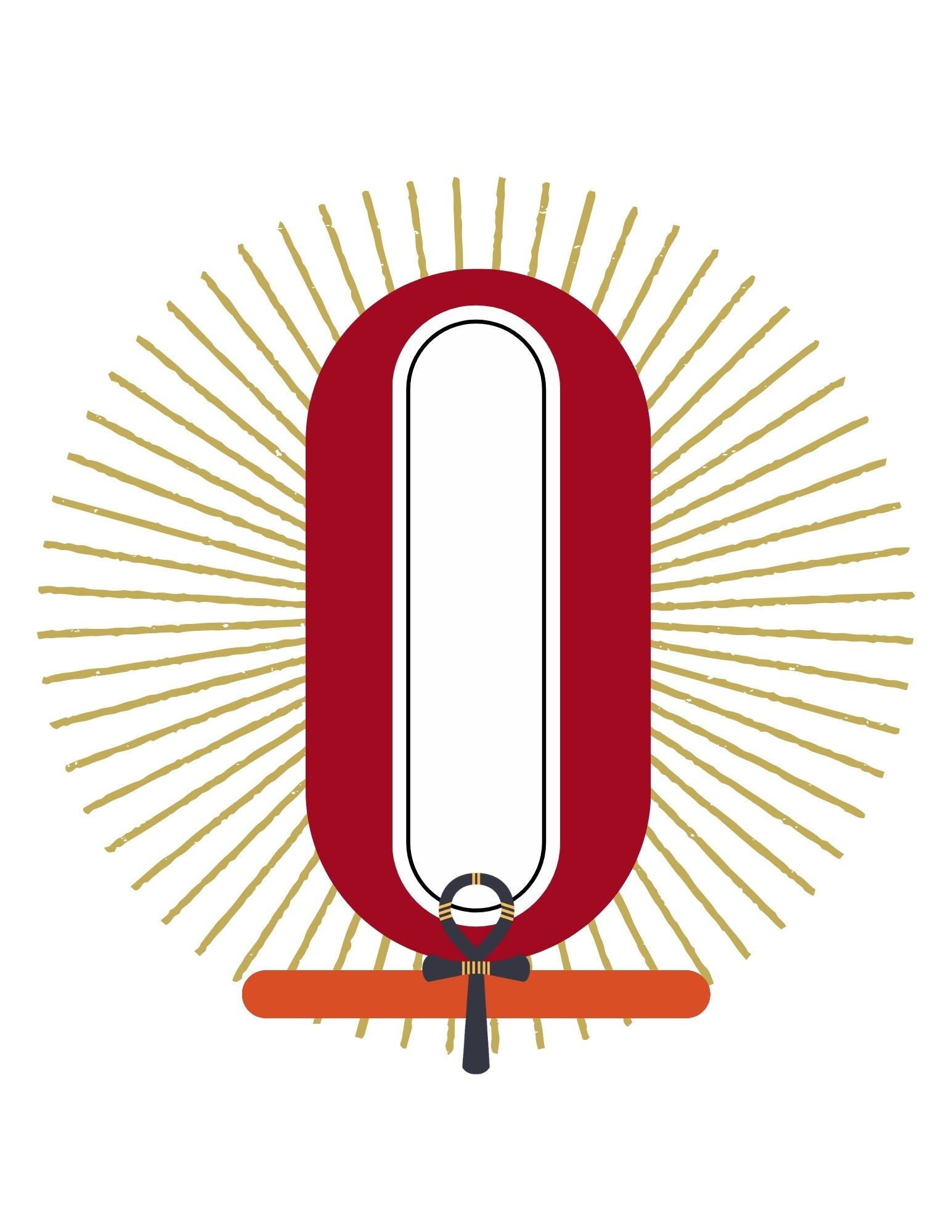 Description: Printed graphic design of a one of our signature Shenus (Kemetic Royal Seal). Has an Ankh (that represents life) at the bottom and rays of light beaming from the background.