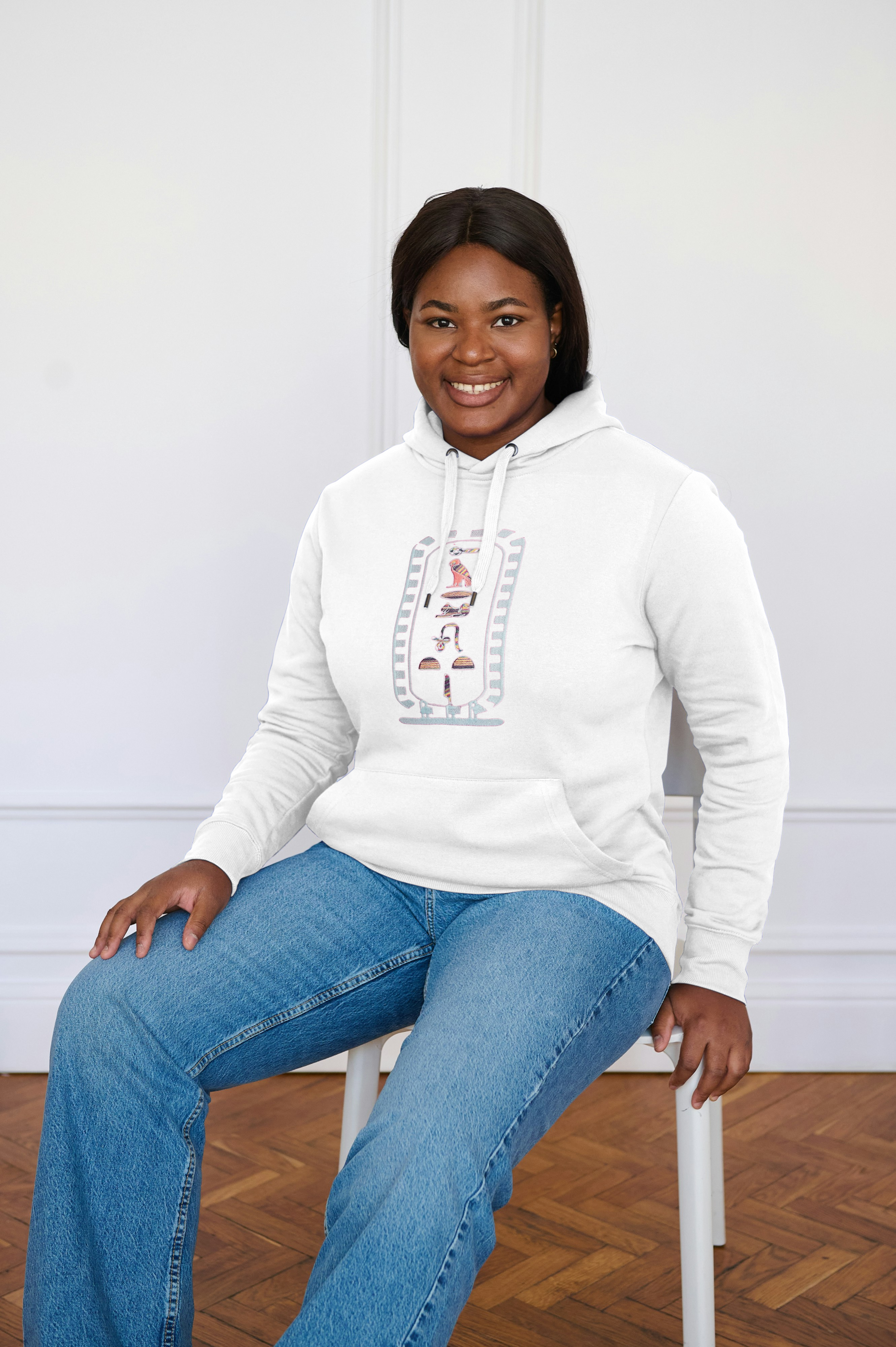 Personalize this image by having your name written the Medu Neter (Egyptian hieroglyphs). Customize the shirt by choosing the hoodie color, shenu background color, 2-3 thread colors for your name, and the thread type (solid, variegated, glow in the dark, or a combination of each). Your shirt will be customized and will have different hieroglyphs than what is shown in this image. If you prefer to have the image without a name, please note that at checkout.
