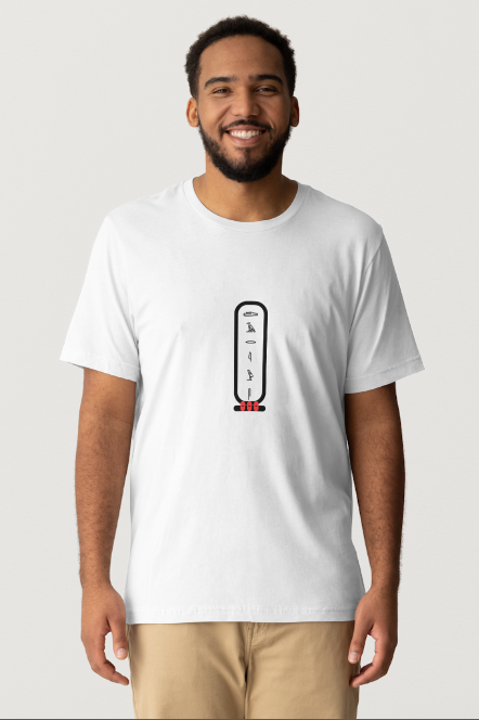 Personalize this image by having your name written the Medu Neter (Egyptian hieroglyphs). Name added at check out. Your shirt will be customized and will have different hieroglyphs than what is shown in this image. If you prefer to have the image without a name, please note that at checkout.