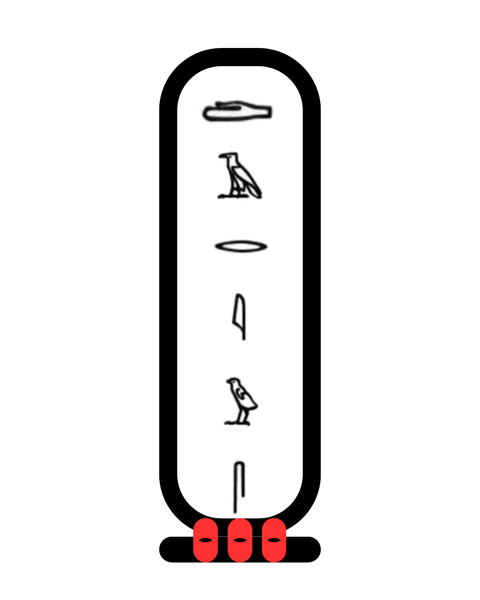 Description: Printed graphic design of a one of our signature Shenus (Kemetic Royal Seal). Simple solid black outline with red ropes at the base.